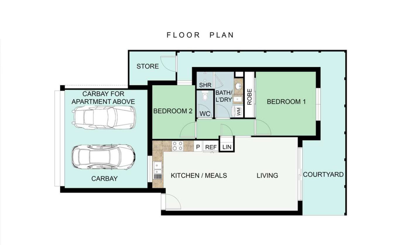 • Outdoor storeroom – accessed from adjoining apartment front area
