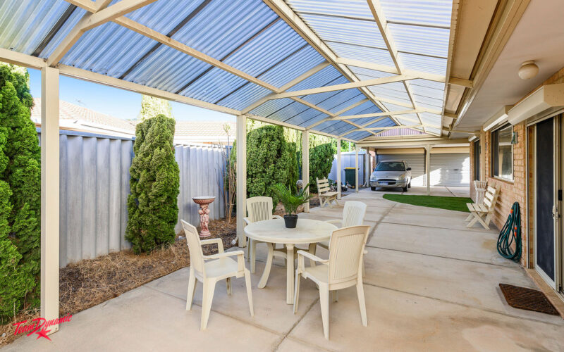 • It has 2 carports which are partially enclosed, and a large accommodating patio and entertaining area.