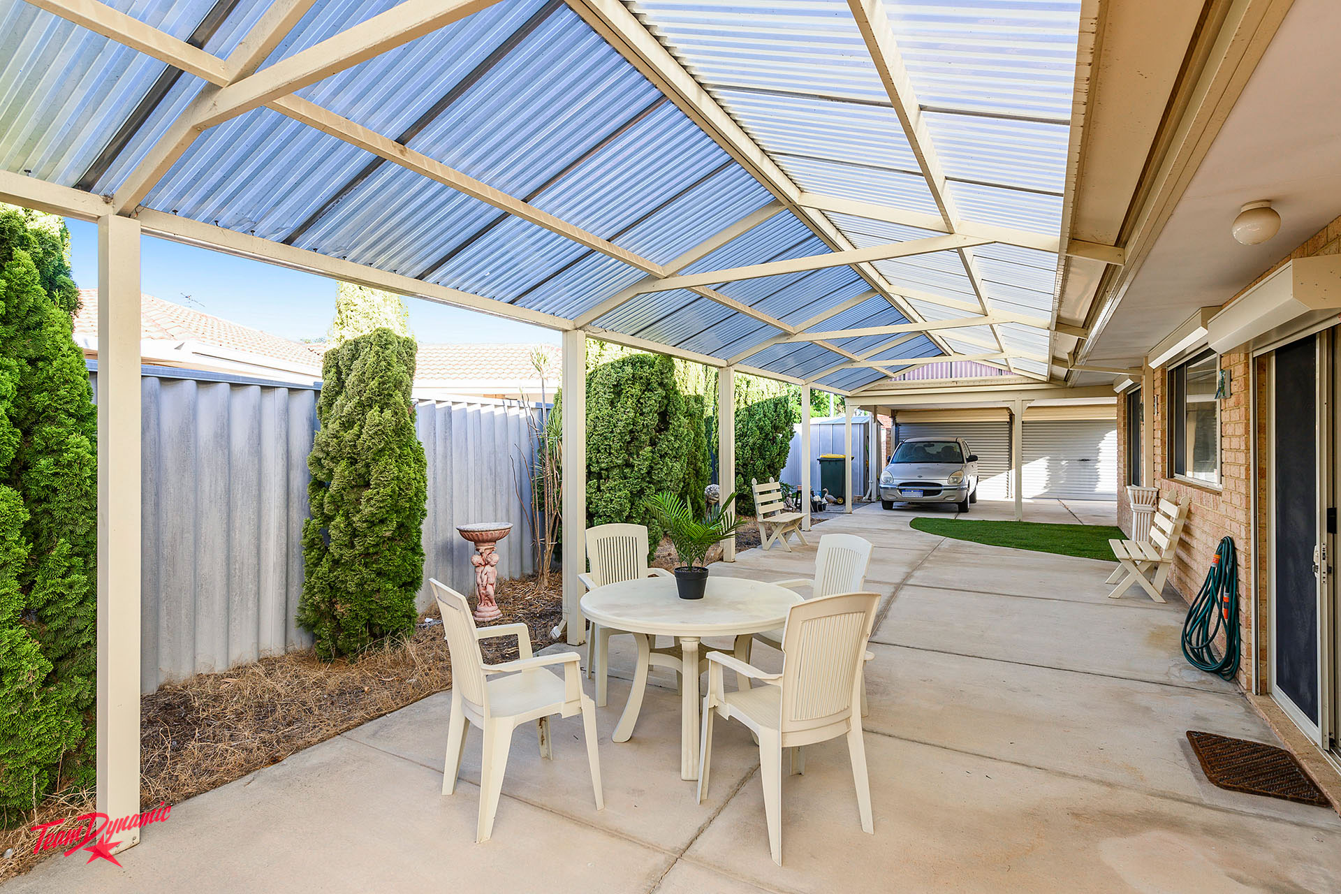 • It has 2 carports which are partially enclosed, and a large accommodating patio and entertaining area.