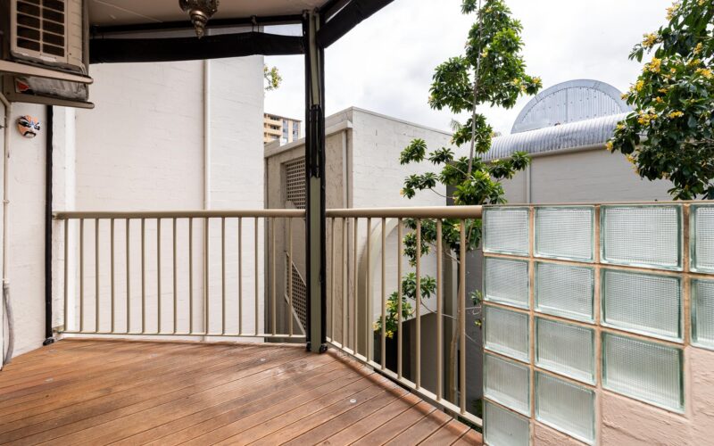 • Covered balcony with leafy outlook;