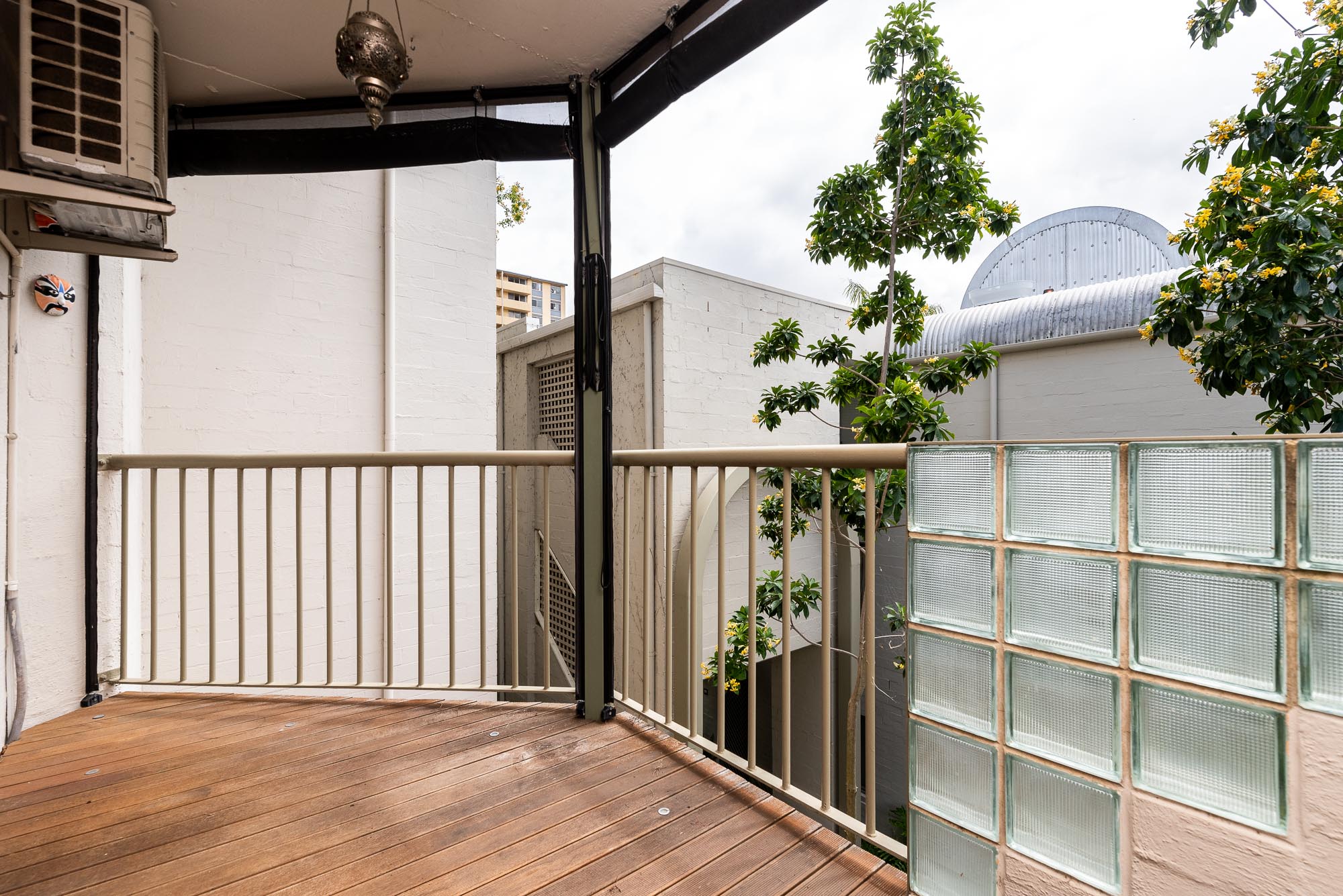 • Covered balcony with leafy outlook;