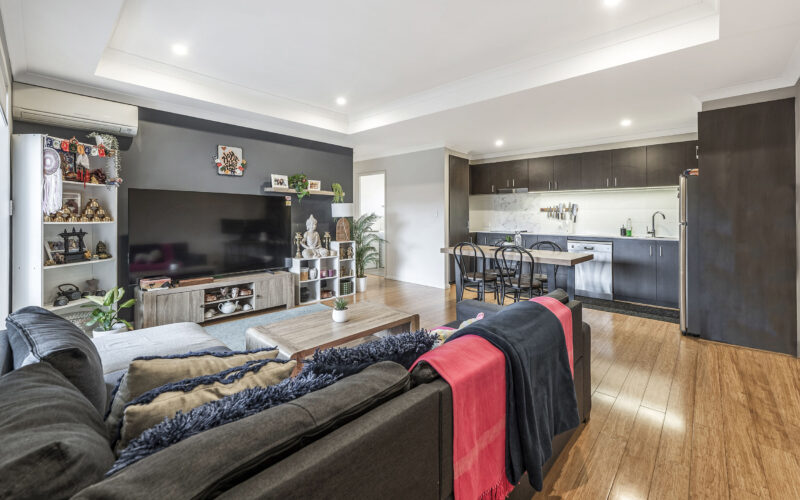 – High ceilings and reverse cycle split system A/C to living