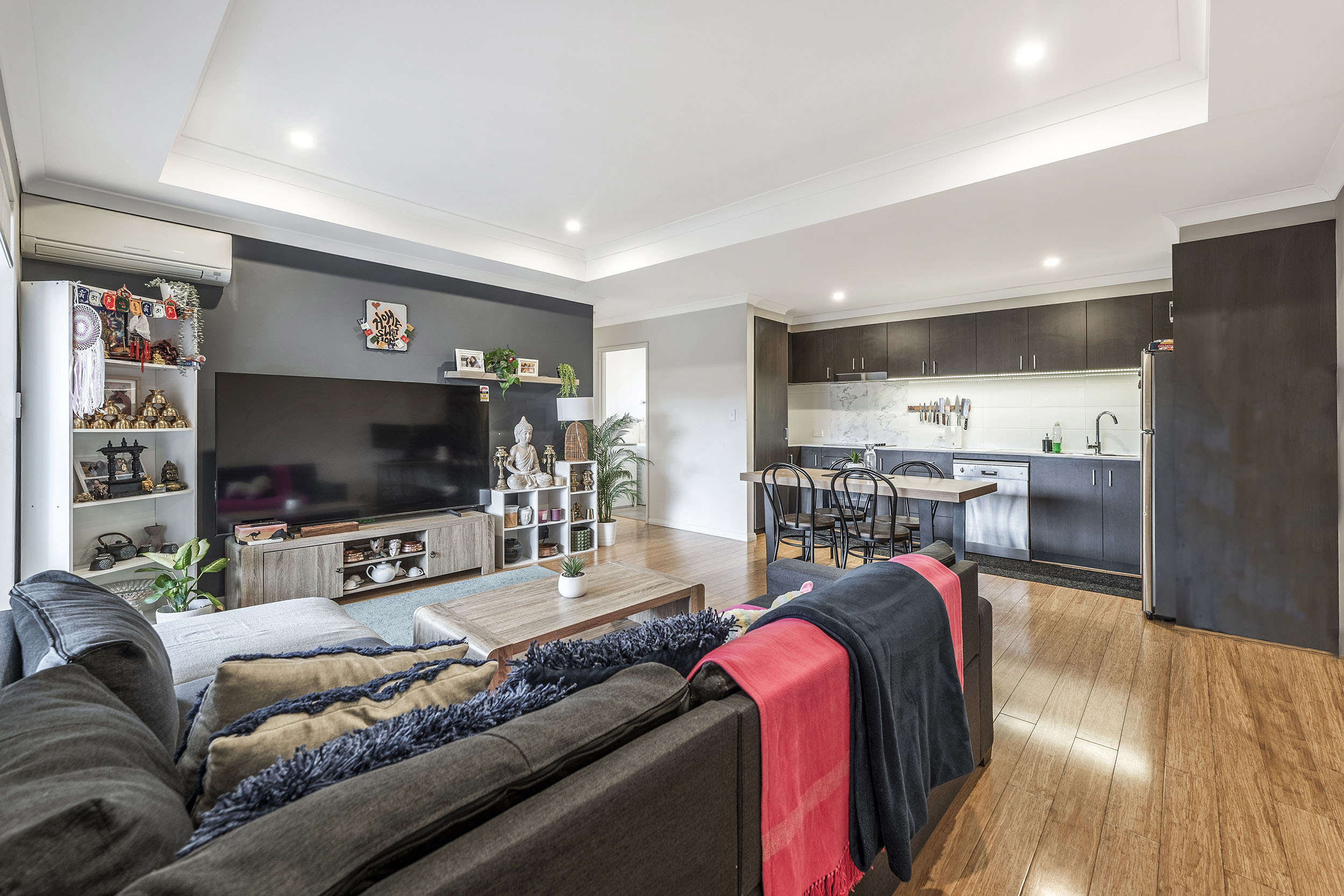 – High ceilings and reverse cycle split system A/C to living